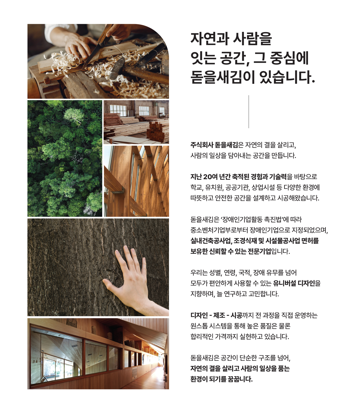 20여 년간의 축적된 경험과 기술력을 바탕으로 자연과 사람을 잇습니다